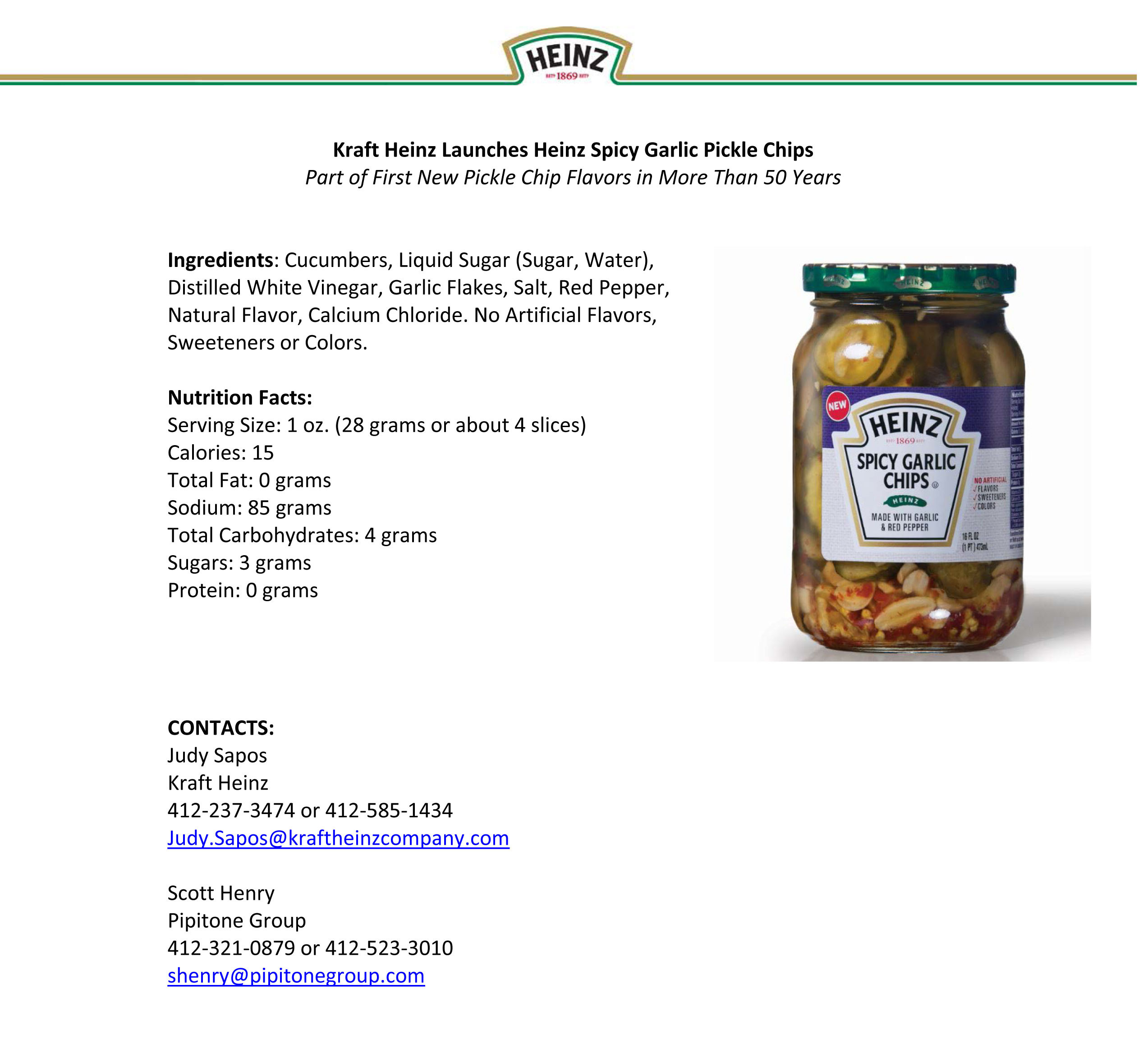 brine. Heinz Spicy Garlic Chips are made with real garlic and red pepper.