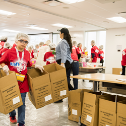 in a meal-packaging event put on by Rise Against Hunger, an