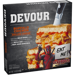The campaign also includes custom DEVOUR packaging featuring Deadpool,