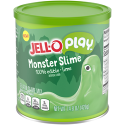 canister of JELL-O PLAY Edible Slime makes two batches of slime, is 100%
