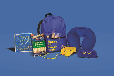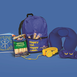 The Kraft In-Flight Relief Pack is packed with items to keep kids occupied while giving parents a chance to relax. The Pack includes a bag of Kraft String Cheese that kids love to peel and play with and a limited-edition Kraft String Cheese-O-Rama play book. The book is specially designed to inspire kids’ creativity and keep kids entertained by peeling and shaping the string cheese to match the shapes on the pages. The pack also includes a soothing eye mask, a comfortable neck pillow and headphones for parents. After all, a happy kid makes for a happy parent, and ultimately a happy cabin.