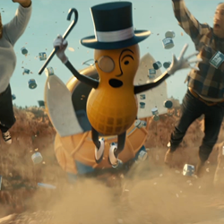 Whereas last year MR. PEANUT saved friends from snacking disappointment, this year he’s saving lives. The newly released pre-game ad shows MR. PEANUT, Matt Walsh and Wesley Snipes are on a nutty adventure in the NUTmobile when MR. PEANUT is forced to swerve, causing the vehicle to spin out of control. The trio jumps out of the NUTmobile, clinging to a tree branch, as the vehicle crashes down into a deep canyon below. They momentarily find safety until their combined weight begins to break the branch. In the ultimate act of friendship, MR. PEANUT lets go and sacrifices himself to save his friends from impending doom.