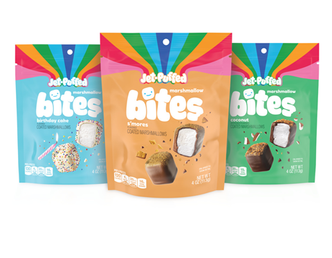 “Our new resealable packaging and Jet-Puffed Bites lineup are answering a consumer desire for more snackable marshmallows.” says Allison Kelly, Associate Director at Kraft Heinz. “The stand-up resealable bags deliver marshmallows that are easy to store and help them stay soft and fluffy, while our new Bites flavors offer an exciting variety of new indulgent flavors.”