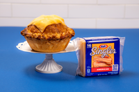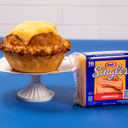 The pairing of cheese with apple pie has long been a tradition. In fact, apple pie has been served with a cheese topping since the 1800s as a sweet and salty treat. The Kraft Singles Apple Pie is a one-of-a-kind pie featuring hand-cut golden delicious apples mixed with cinnamon, nutmeg, light brown sugar and of course, melty Kraft Singles baked within. Each 5” pie is topped with a delicious Kraft Single, resulting in a dessert that is both intriguing and mouthwatering.