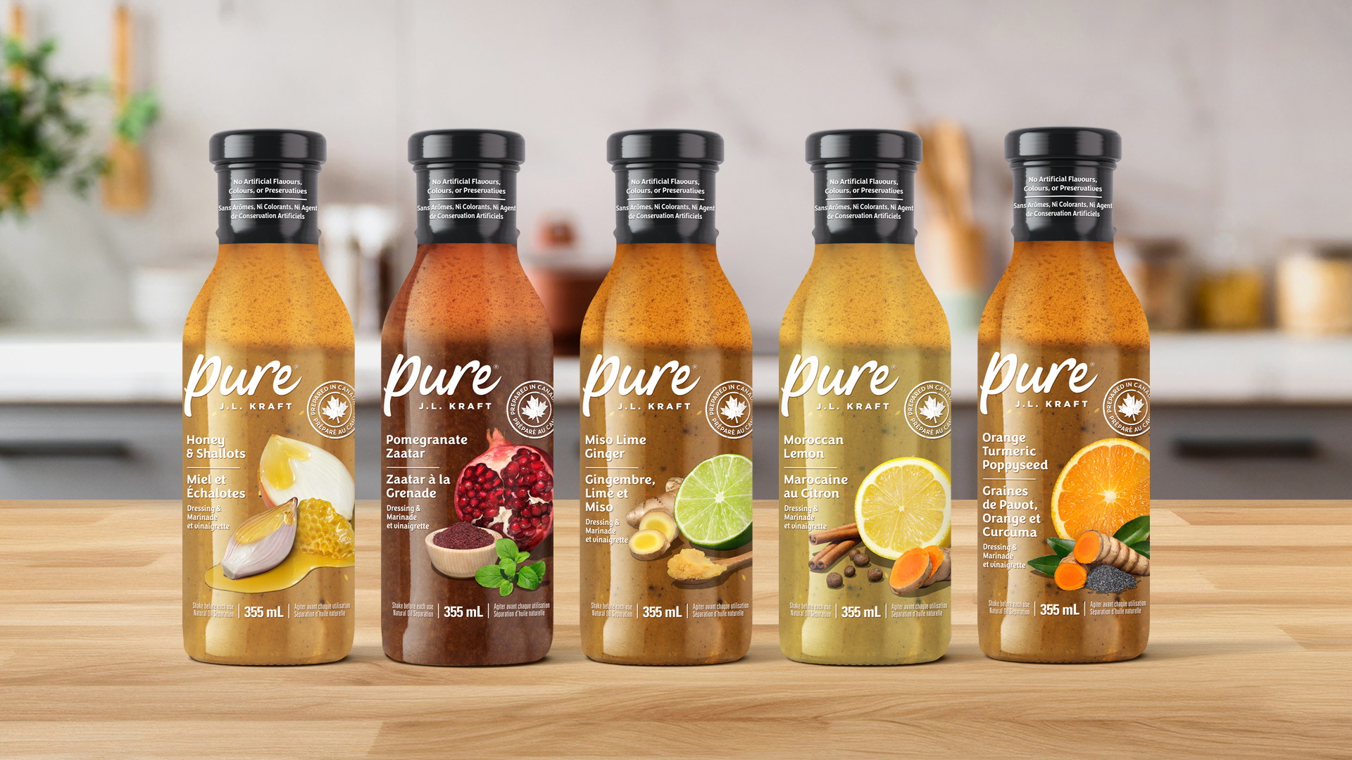 With six new-to-market flavours, Pure J.L. KRAFT is first brand in category to offer shelf-stable premium dressings and marinades made with no artificial preservatives, flavours, or colours