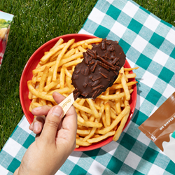 The crave-worthy Fudge n’ Vanilla French Fry Pop wraps a vanilla oatmilk frozen base in a rich, chocolate fudge shell rolled in real, crispy potato bits. The collaboration creates an all-in-one, mess-free offering that is sure to delight French fry and ice cream lovers across the country.