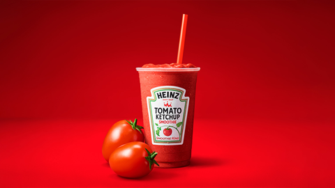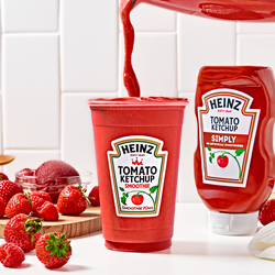 With new celeb-inspired smoothies dropping almost daily and millions of social media posts about smoothies in the past year alone – including thousands a day during the hot summer months – smoothies are clearly having a moment.1,2 The HEINZ Tomato Ketchup Smoothie blends sweet Acai sorbet, crisp apple juice, juicy strawberries, and tart raspberries with the unmistakable taste of HEINZ Simply Ketchup, which is all-natural and made with red ripe tomatoes full of vitamins and antioxidants. The result? A sweet and fruity smoothie with a bright, tangy ketchup finish, perfect for HEINZ and smoothie lovers alike.