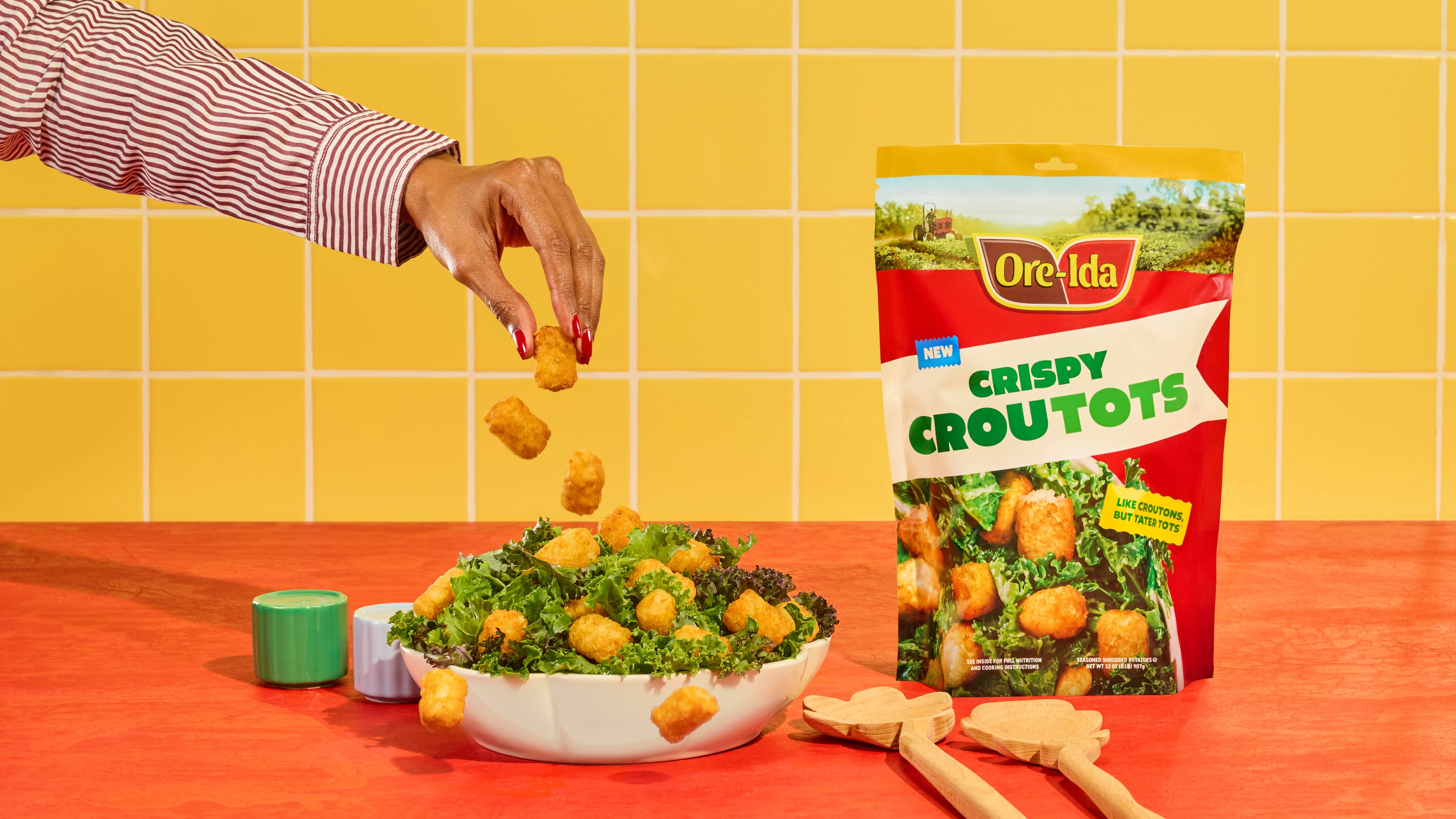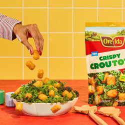 Ore-Ida has always been about bringing excitement to the table through the fluffy, warm potatoes families know and love. With greens taking over social feeds and dinner tables alike, the brand saw an opportunity to reimagine a classic topping in a way only the inventor of the Tater Tots could. CrouTots make salads worth eating again and prove that mealtime can be both fun and flavorful.