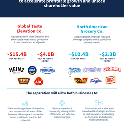 Following a thorough evaluation of potential strategic transactions, Kraft Heinz has determined that separating into two standalone companies, “Global Taste Elevation Co.” and “North American Grocery Co.”, offers the most compelling opportunity to unlock long-term value for all Kraft Heinz shareholders.